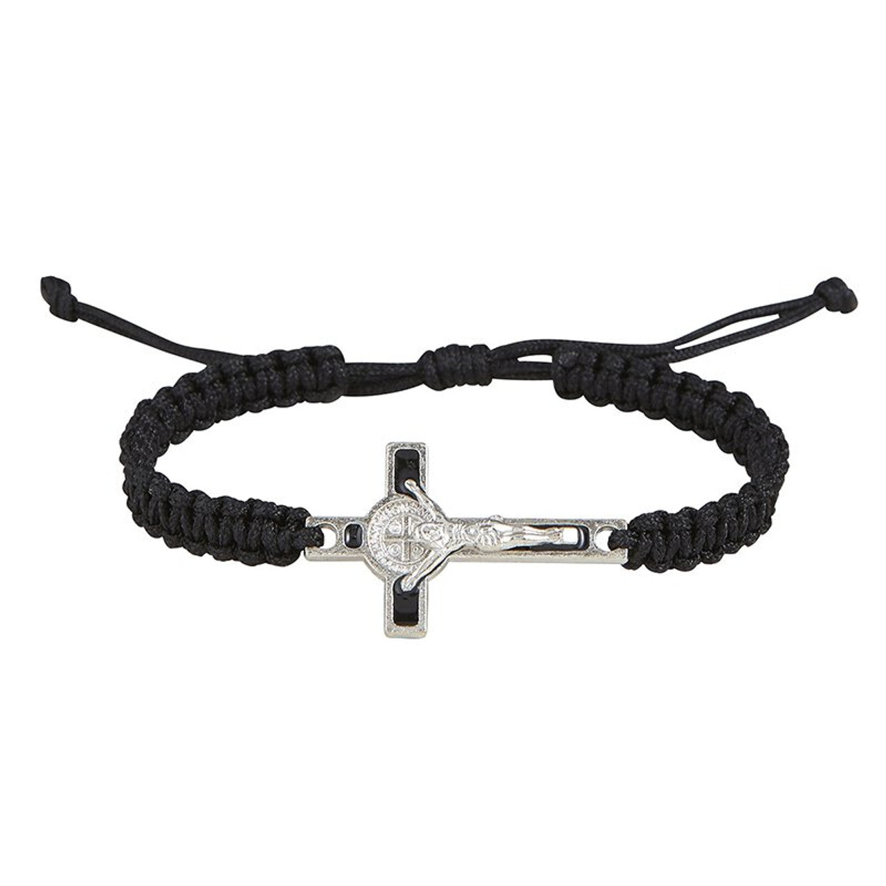 Black macrame St. Benedict crucifix bracelet