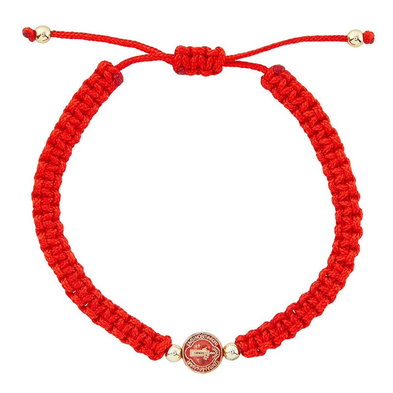 Red macrame St. Benedict bracelet with single red/enamel and golden small bead